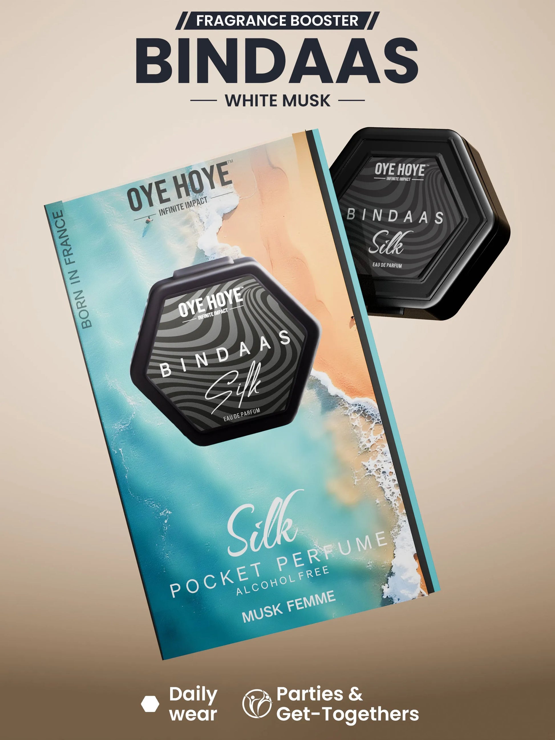 Own your vibe with Bindaas — a bold, energetic and carefree fragrance created for women who refuse to blend in. This 6ml Fragrance Booster delivers a vibrant mix of musky freshness and warm feminine depth, giving you a scent that speaks before you do.
